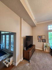 We turned this 2 car garage into a separated gym and play room. We framed out the A/C closet as well as the divider wall to accommodate a double pocket door. We hung and finished all the drywall, installed 2 exterior french doors, the flooring, and trim. We also built a custom toy crate on the play room side. Right outside this renovation, we constructed a play area consisting of 2 separate mulch areas, a paved sitting area, a sandbox, a pebble walkway from the gate to the sandbox , and the play set (box set).